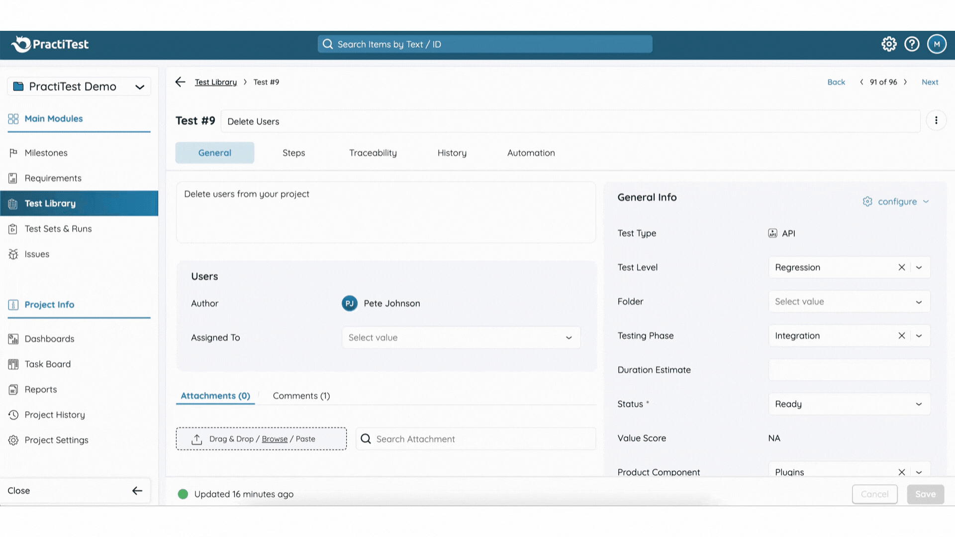 - Open a test that has existing steps.
